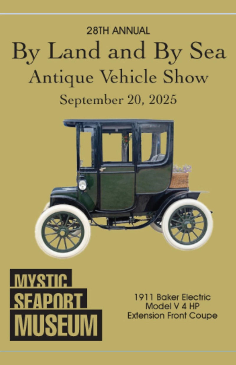 Our 1911 Baker will be appearing at the Mystic Seaport By Land and By Sea Antique Vehicle Show on September 20, 2025.We are honored to have had the vehicle selected to appear on the Event Flyer and the Dash Plaques as shown below!